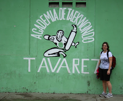 Following the market we walked all over the downtown area. It was amazing to see shacks that look like they're about to fall over next to very nice homes. Along our walks I found a Taekwon-Do school! Even here in the Dominican Republic martial arts are still practiced, and from what I came to find out, its quite popular. In contrast to the small, cement buildings was this gorgeous church. We eventually made our way down to the ocean front where we stopped for an ice cream. It was so tempting to go with my favourite, cookies n' cream but I was adventurous and tried raisin and rum very yummy. We enjoyed being by the ocean while we waited for the bus to pick us up.
