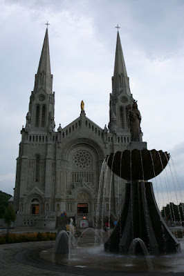 One of the many stunning views out over the St. Lawrence River, that's Sainte Anne de Beaupre in the distance